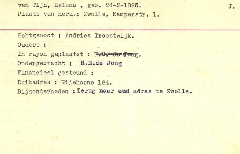 Onderduikinschrijving van Helena van Tijn