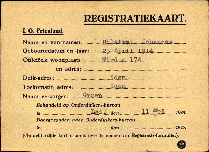 Duikadres: 174, Wirdum - Oorspronkelijk adres: 174, Wirdum - Reden onderduik: arbeidsinzet - Overige opmerkingen: Achterkant beroep: Vertegenwoordiger - Achterkant naam werkgever: -