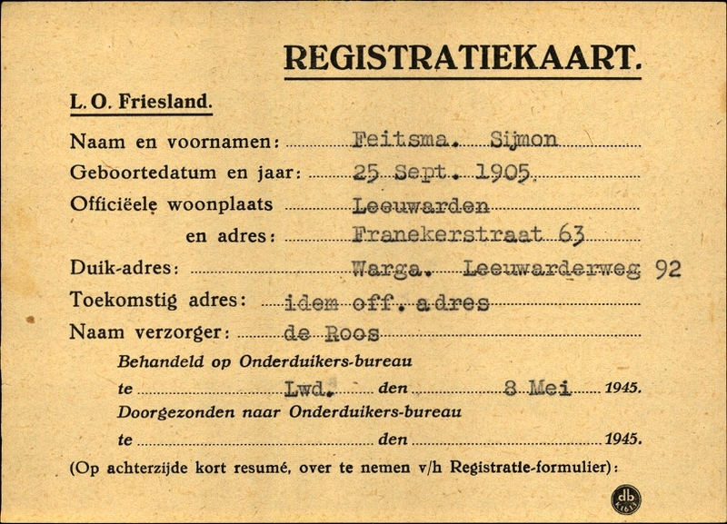 Onderduikinschrijving van Sijmon Feitsma