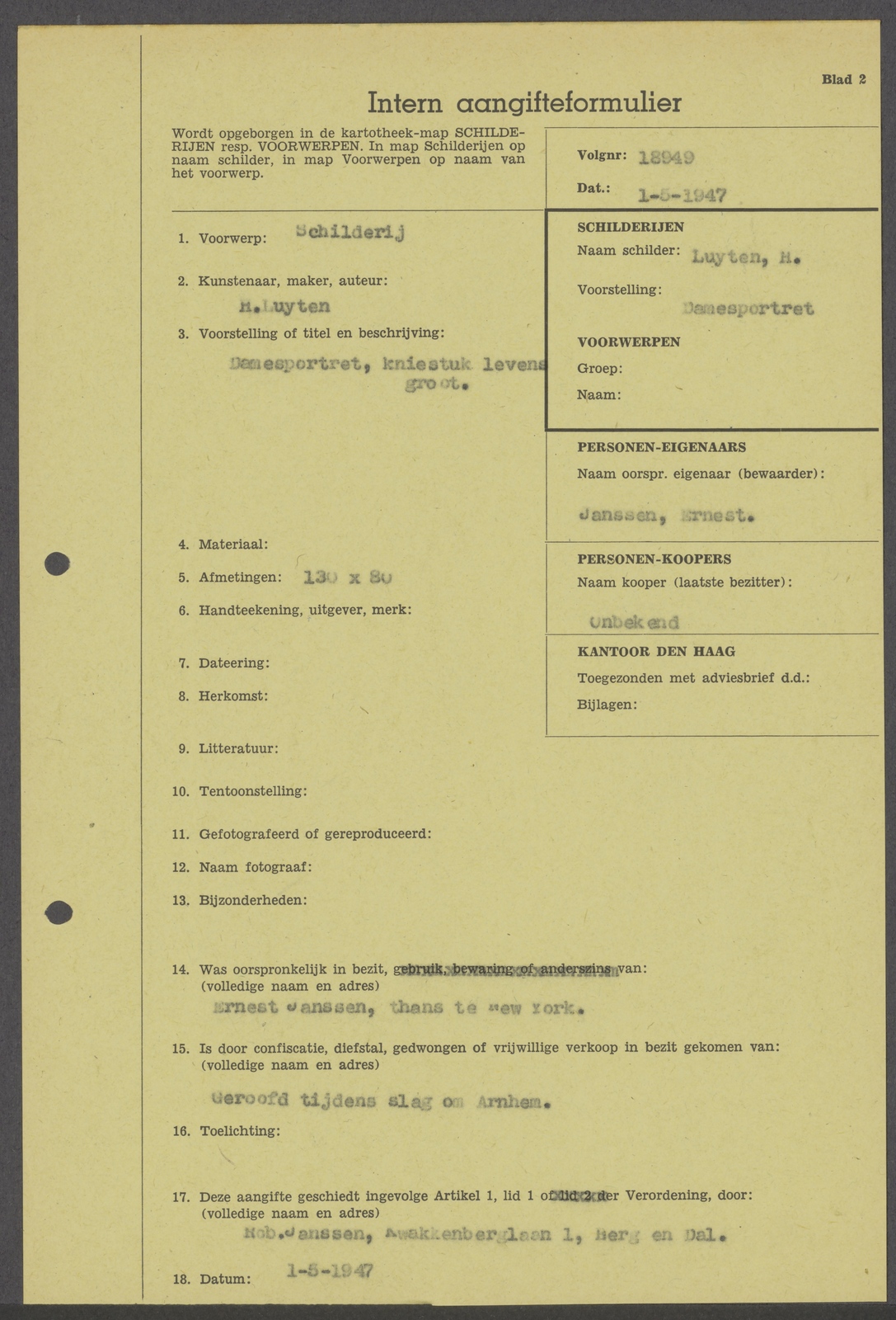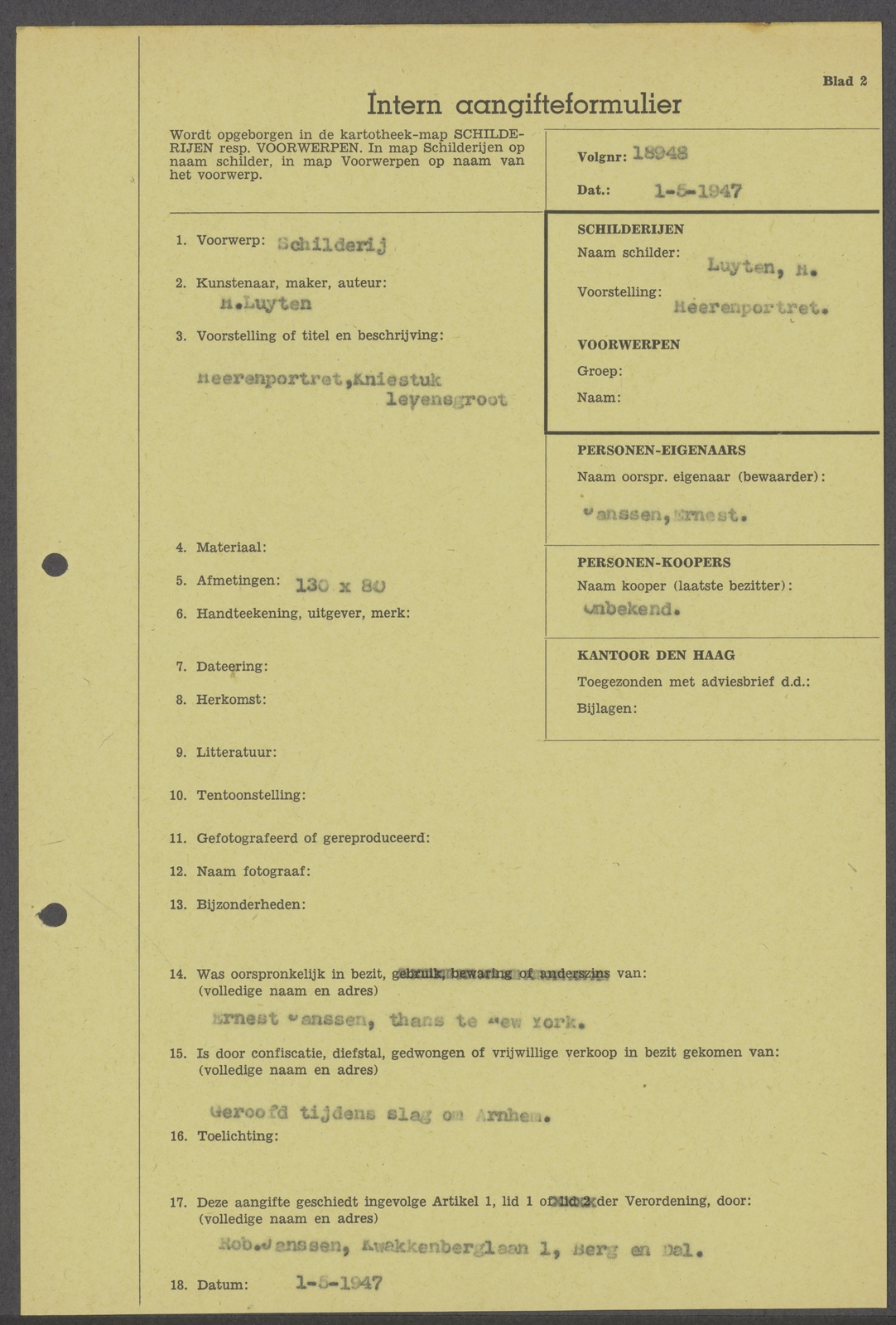 Aangifteformulier - Aangiftedatum: 1947-05-01 - Aangiftenaam: Janssen, R. - Aangiftenummer: 18964 - Aangifteplaats: Berg en Dal