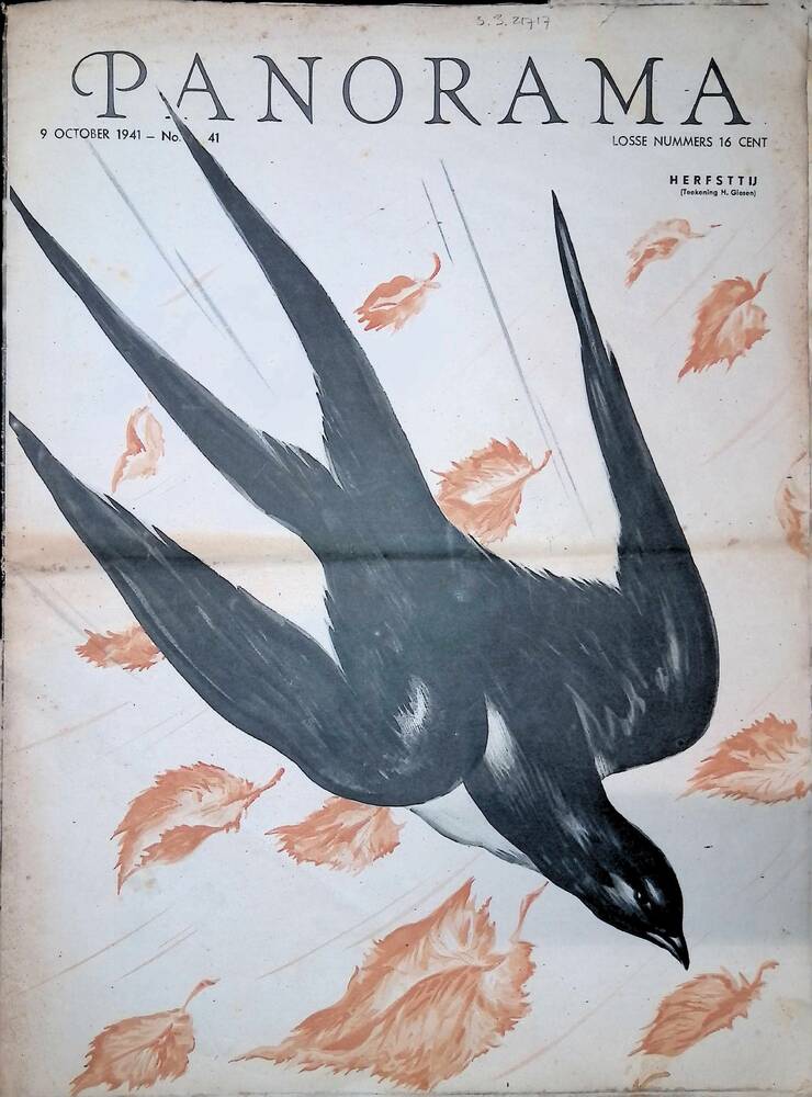 Panorama. Ons Land. No 42, 16 oktober 1941"In den Herfst." Tijdschrift met sprookjesachtig mooie voorkanten, maar de pers stond duidelijk onder Duitse invloed.Het blad bevat verhalen, reclames, documentaires, nieuwsfeiten en achtergrondartikelen