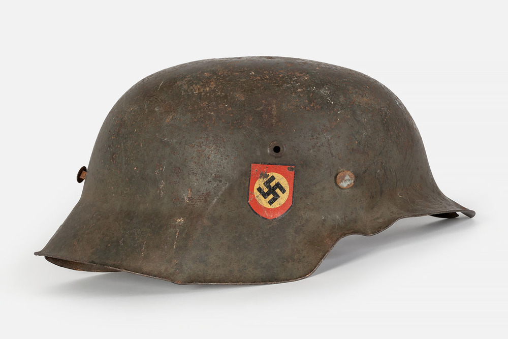 helm, Duits, verchroomd met binnenwerk, waarschijnlijk Brandweer. Merk: "Eurocap" Benor. Inschrift: goedgekeurd TNO