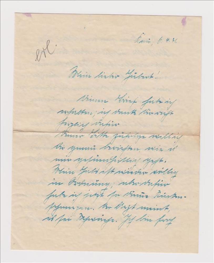 Brief van Hubert aan Ella, geschreven in de zomer van 1931