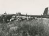 Foto jongens die op romp van wrak van gecrashte Stirling zitten. Tekst achterop: "Stirling Oudenbosch 18-9-44".