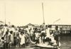 Nieuw-Guinea; aankomst bootje, Papua's op kade