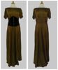 Lange japon goudlamé met zwarte ceintuur van fluweel. Vierkante hals en korte mouw. Wijde rok.