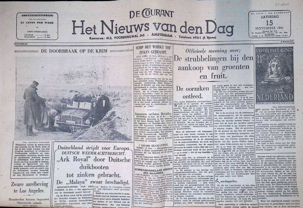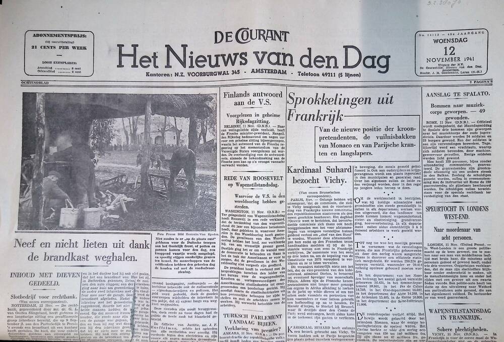 De Courant, Het Nieuws van den Dag, 7 november 1941