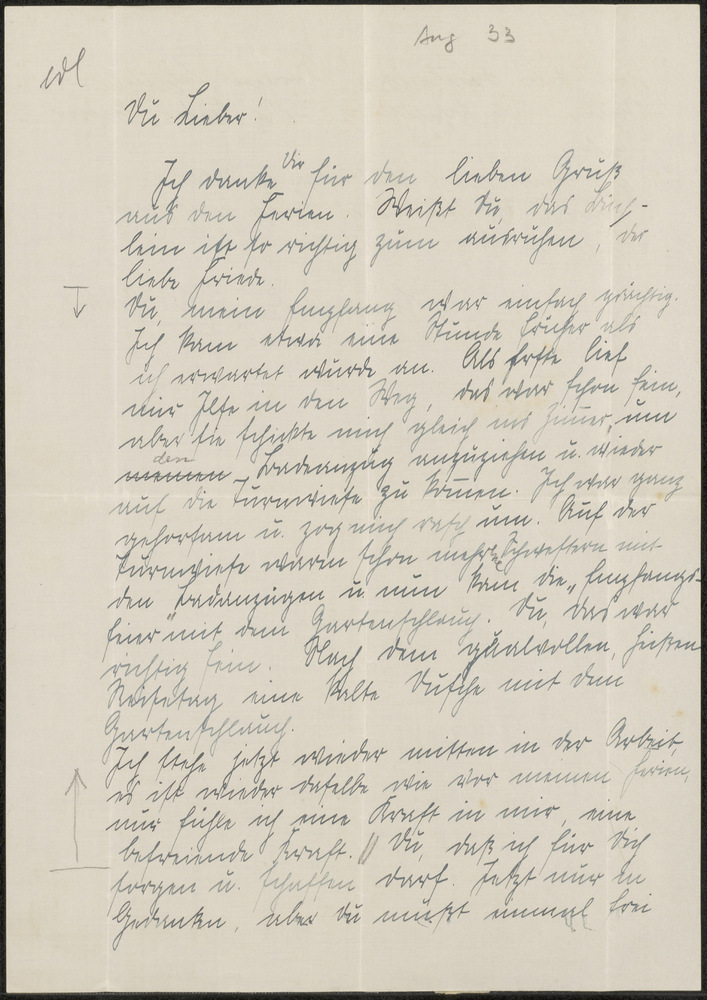 Brief van Hubert aan Ella 1933-10-31. Onleesbaar handschrift.