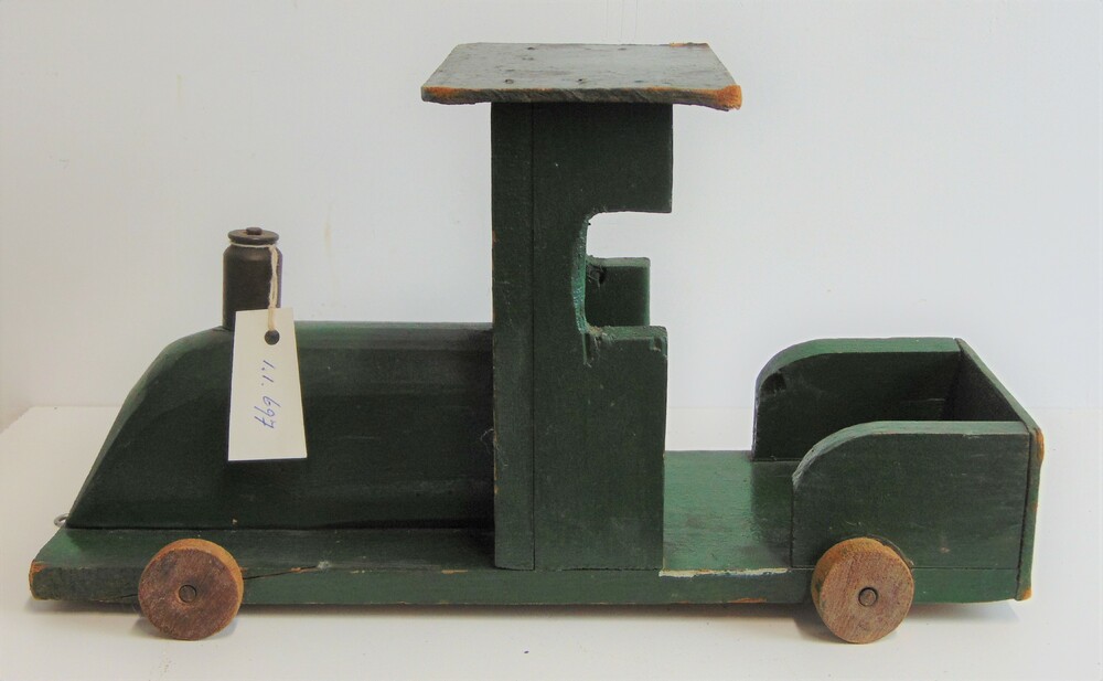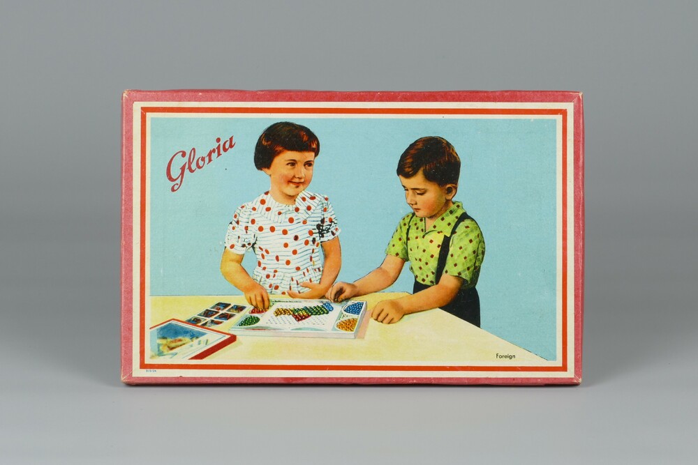 Albumblad met twee foto's: een werkplaats waar pantoffels gemaakt worden en een werkplaats waar men speelgoed maakt. Onderdeel van een fotoalbum met foto's door Dick van Maarseveen van het krijgsgevangenenkamp Stalag IV B in Mühlberg in de periode 1943-1945.