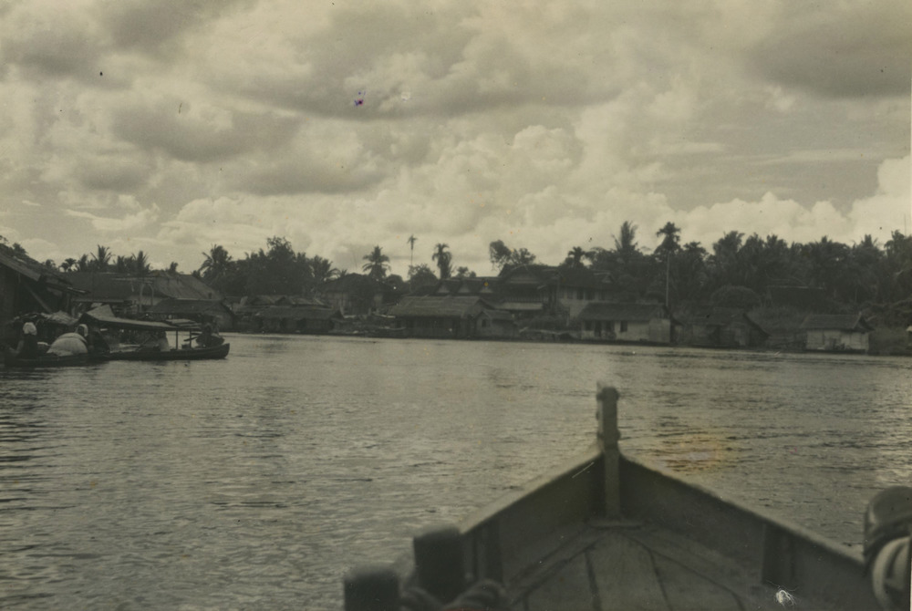 Fotoalbum. De Mariniers Brigade op Java. Burgerbevolking bedrijft de handel op het water.
