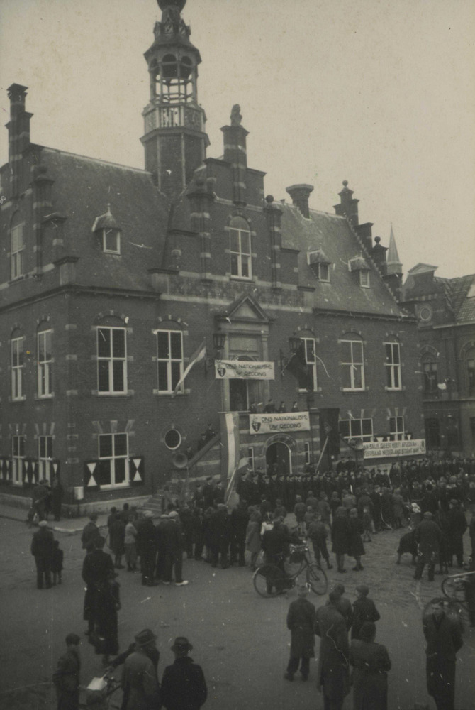 Propaganda door de NSB op het Amstelveld, voorheen een vooral joodse markt.