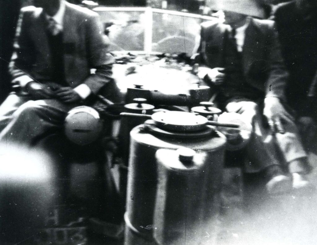 De bevrijding van Brielle: de feestelijke intocht van Captain Cary in de auto van Inselcommandant Schermuly, die bestuurd werd door ...