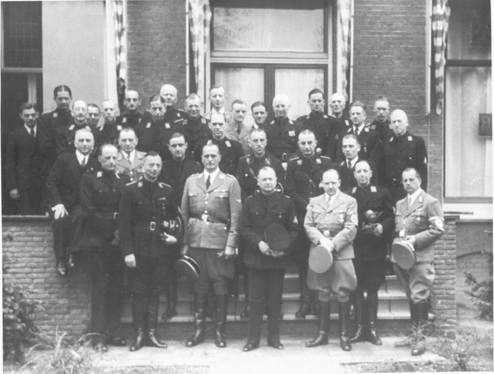 Hauptdiensteleiter Schmidt in gezelschap van den SS Obergruppenführer Rauter bij een bezoek aan het Hoofdkwartier der N....