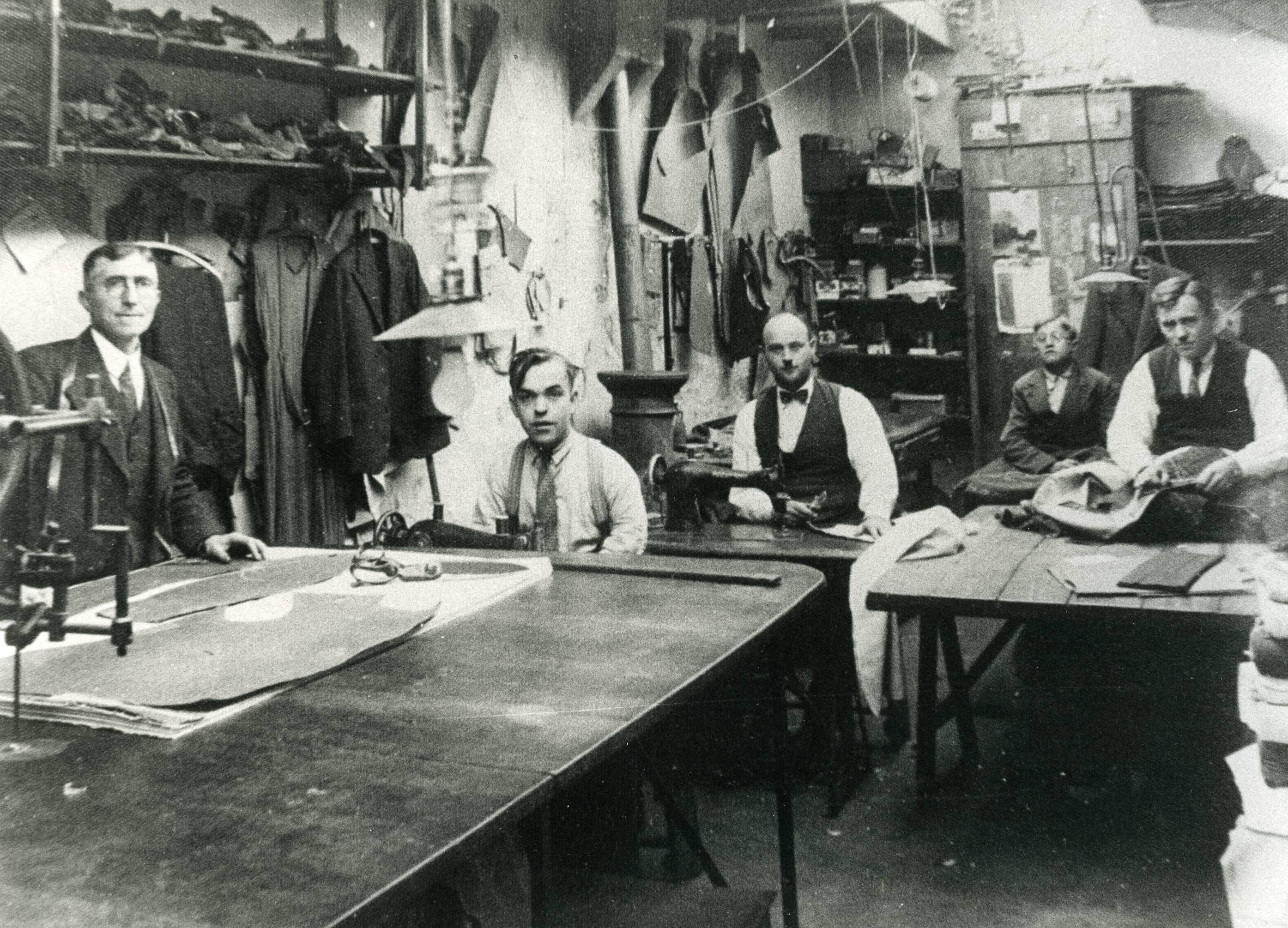 Kledingmakerij achter textielwinkel Hes v.l.n.r. : Henri Hes - Marinus v.d.