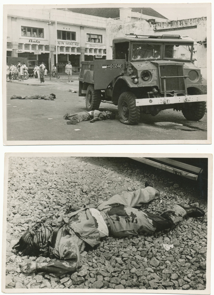 Foto uit een reeks van 13 foto's van de opstand in Bandoeng in 1950. Actie Westerling.
