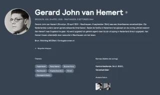 In het nieuwe ontwerp staan de biografische gegevens van een persoon bovenaan de pagina. Indien bekend zie je hier ook de woonplaatsen en beroepen van de persoon tijdens de oorlog. Als er een biografie beschikbaar is, zie je deze nu direct, in plaats van verborgen achter een knop. Daarnaast zijn er nu tags beschikbaar die linken naar thema’s die relevant zijn voor het oorlogsleven van de persoon.
