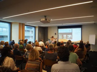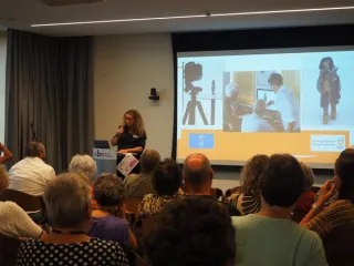 Annette Schautt stelt verschillende onderdelen van het project voor, die een innovatieve toegang tot de geschiedenis van de Tweede Wereldoorlog nastreven:
