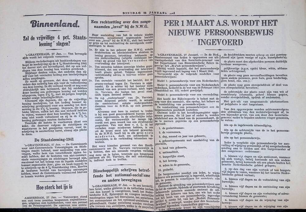 Vanaf april 1941 ontving iedere Nederlander die ouder was dan 14 een persoonsbewijs. Het was verplicht deze te allen tijde bij zich te dragen.