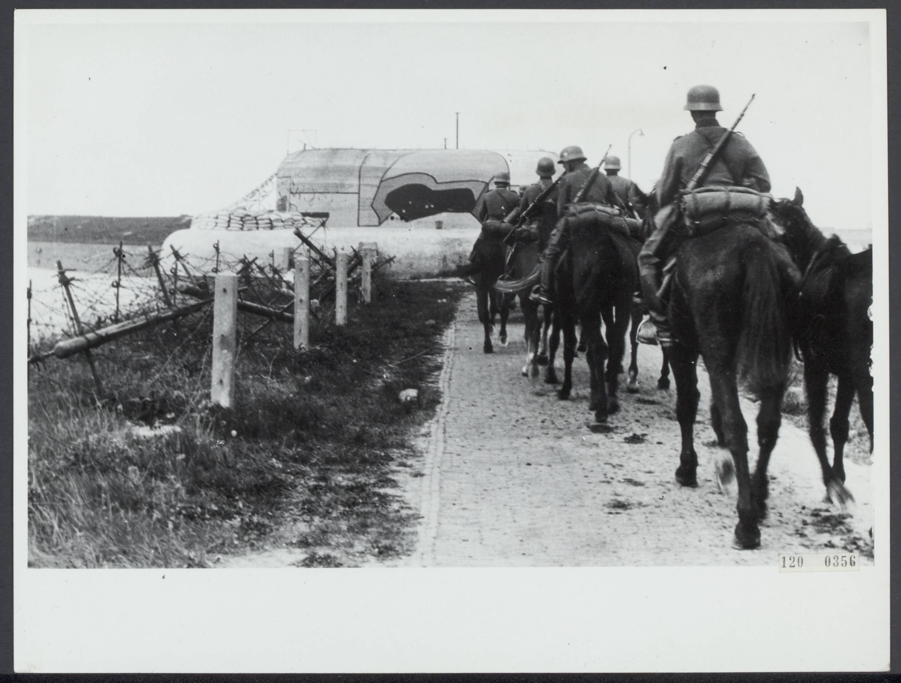 Bunkers Kornwerderzand. De Duitse 1e Caveleriedivisie trekt na de slag over de Afsluitdijk richting Noord Holland.