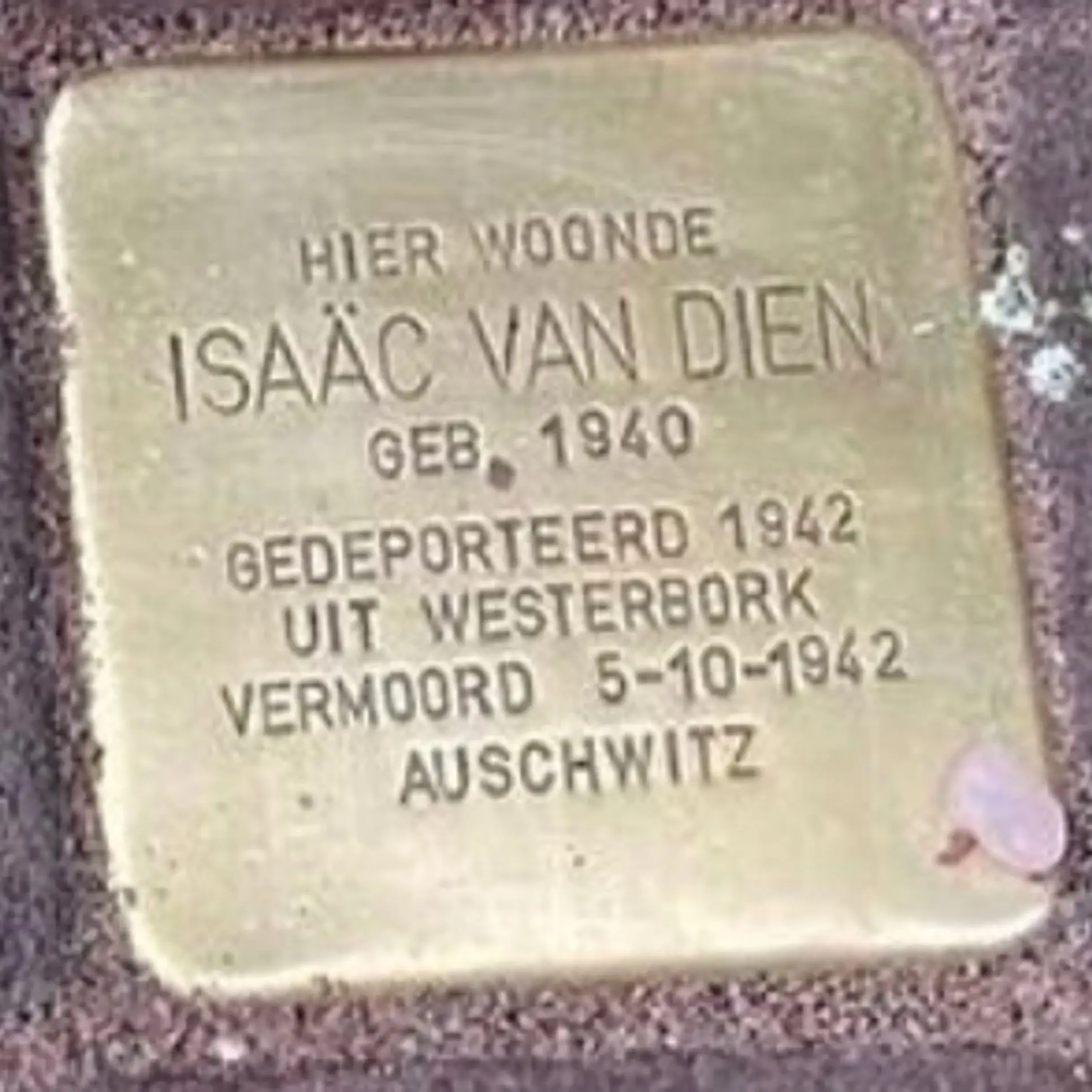 Alphen aan den Rijn, 31 oktober 1940 - Auschwitz, 5 oktober 1942Het leven tijdens de oorlog van Isaäc van Dien