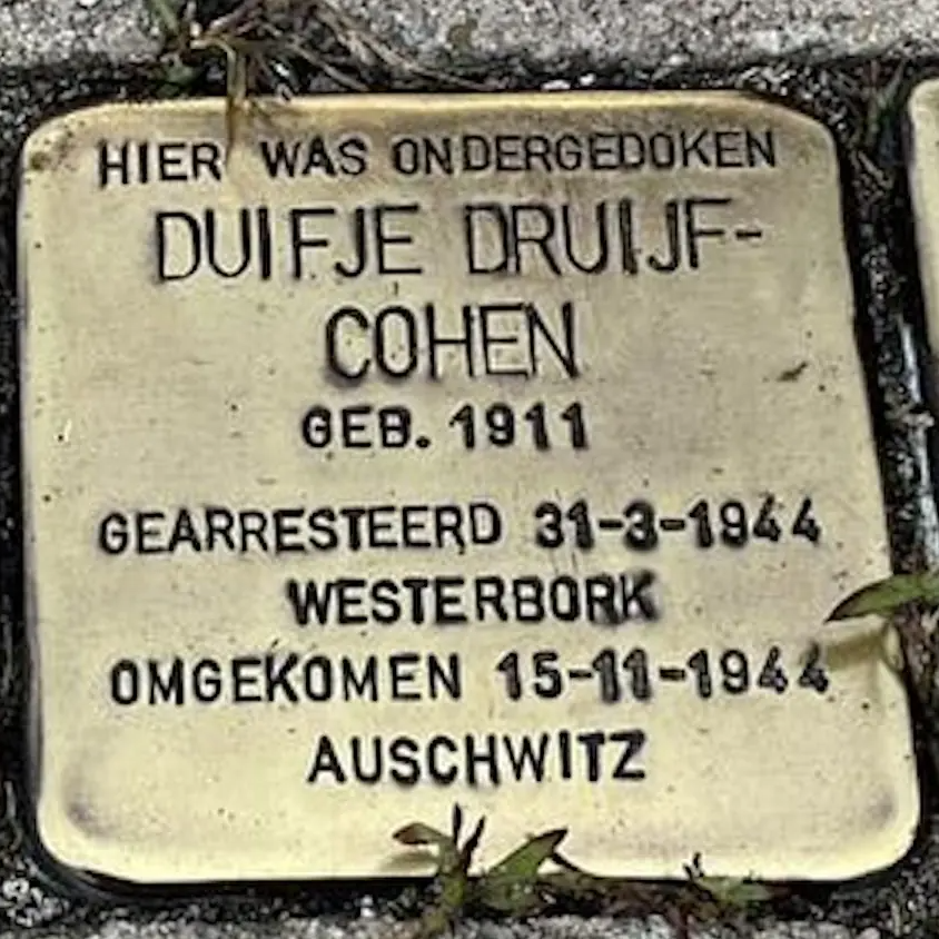 Amsterdam, 21 januari 1911 - Auschwitz, 15 november 1944Het leven tijdens de oorlog van Duifje Druijf-Cohen