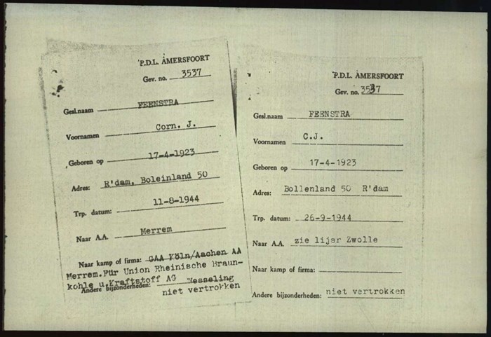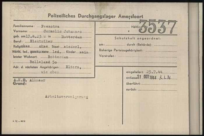Rotterdam, 17 april 1923 - locatie onbekend, datum onbekendHet leven tijdens de oorlog van Cornelis Johannes Feenstra