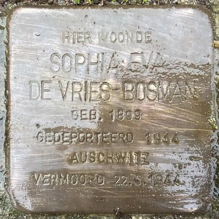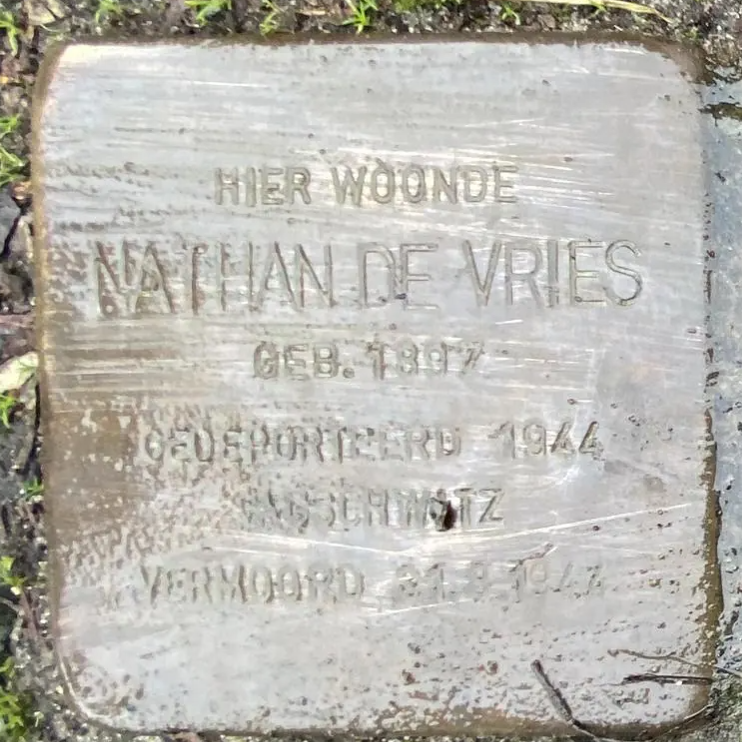 Rotterdam, 4 oktober 1925 - Auschwitz, 24 september 1943Nathan de Vries wordt op 3 juni 1897 in Amsterdam geboren. Hij is handelsreiziger van beroep. Op 24 december 1924 trouwt hij met Sophia Eva Bosman, op 25 september 1899 in Rotterdam geboren. Zij is de eigenaar van een huis in de Tuinstraat 5 dat in 1943 onteigend wordt door de autoriteiten en aan een particulier wordt verkocht. Hun zoon, Abraham de Vries, wordt op 4 oktober 1925 in Rotterdam geboren. Het gezin komt in 1929 in de Ventoseflat aan de Mathildelaan 73 wonen.