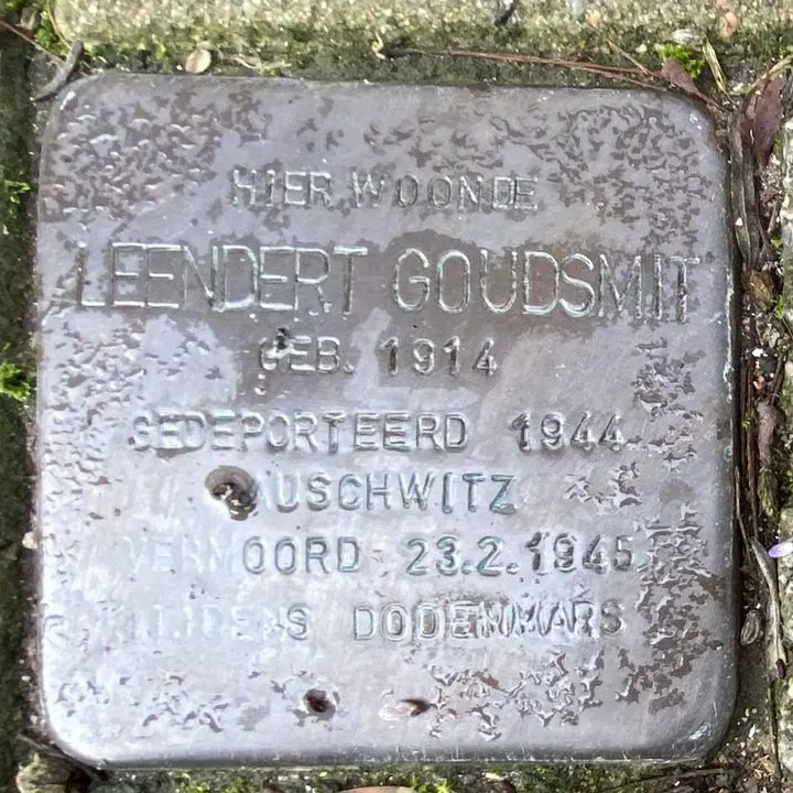 Amsterdam, 17 augustus 1914 - Silezië, 23 februari 1945Leendert Goudsmit wordt op 17 augustus 1914 in Amsterdam geboren. Hij is de zoon van Jacob en Marianna Goudsmit die in de Prins Hendrikstraat 46 wonen.