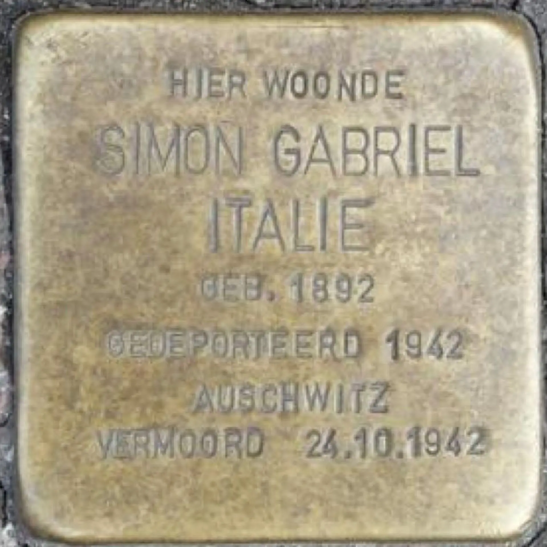 Simon Gabriel Italie wordt op 12 oktober 1942 vanuit Westerbork gedeporteerd en op 24 oktober 1942 in Kommando Golleschau vermoord.