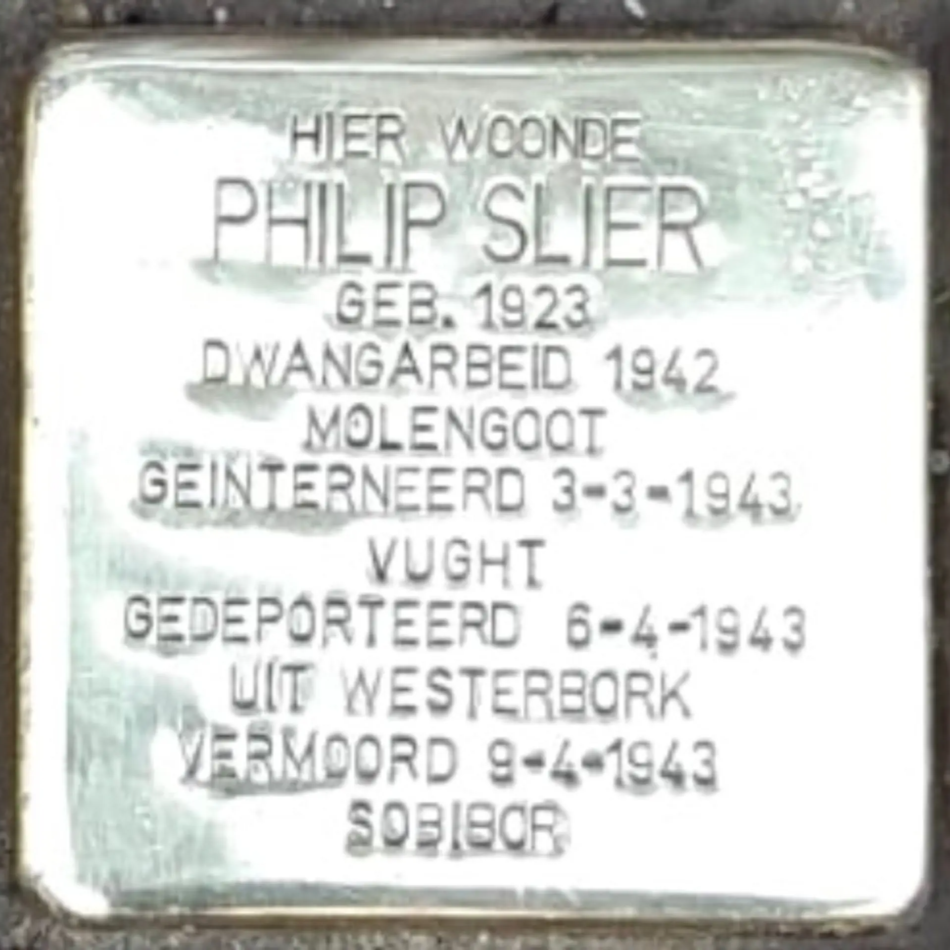 Amsterdam, 4 december 1923 - Sobibor, 9 april 1943Het leven tijdens de oorlog van Philip Slier