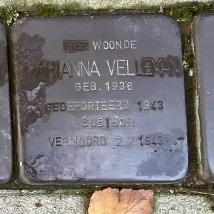 Een bevriend echtpaar uit de Distelstraat reist regelmatig naar Amsterdam om het gezin Velleman stiekem eten te brengen. Op een dag is het gezin er niet meer,ze zijn op 20 juni 1943 naar Westerbork afgevoerd en op 29 juni 1943 naar Sobibor gedeporteerd. Maurits Velleman, Rebecca Velleman-Cardozo en hun drie dochters Esther, Marianne en Clara worden in Sobibor op 2 juli 1943 vermoord.