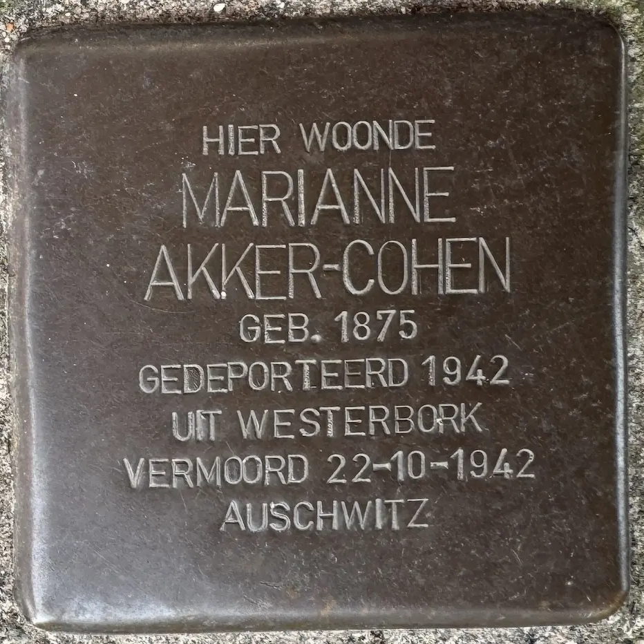 Veendam, 5 februari 1875 - Auschwitz, 22 oktober 1942Het leven tijdens de oorlog van Marianne Akker-Cohen