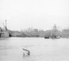 Maastricht. Sint Servaasbrug. Zuid Westen. Staat van oorlog. Overzicht vanaf de Oeverwal. Eerste militaire noodbrug op de plaats van het door de Nederlandse troepen vernielde hefgedeelte.