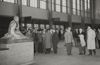 Op bruin papier geplakte zwart-witfoto van een maquette van het Amstel station bij Amsterdam. Onder de foto is met blauwe pen het oude objectnummer 4797 en met potlood de titel 'Maquette Amsterdam Amstelstat.' geschreven.