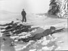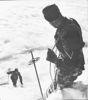 Wachablösung ... am Seil! Auf dem Gipfel des Berges sind Tag und Nacht zwei Mann postiert, 150 Meter tiefer liegen ihre Kameraden in der Schutzhütte. Driemal innerhalb vierundzwanzig Stunden muss der steile Hang zwischen der Hütte und dem Gipfel überwunden werden. Dicht drängt sich das Wolkenmeer über dem Tal.
