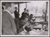 Heren tijdens een toespraak op de schietbaan