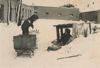 German soldiers looking forward to rations! German advance guard in an evacuated village in no man's land eagerly awaiting their comrades, who are bringing their rations to the furtherst front on sleds.