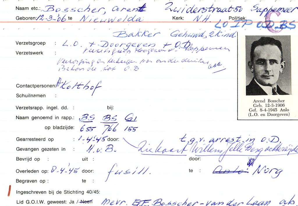 Systeemkaarten met namen van personen uit het verzet: Abraham Raspe