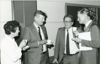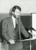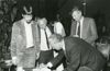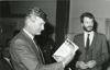Uitreiking van het boek ‘Het Joodse werkdorp in de Wieringermeer (1934-1941)’ van mw. H.B.J. Stegeman en J.P. Vorsteveld aan minister van Sociale Zaken en Werkgelegenheid J. de Koning in het gemeenschapsgebouw van het voormalige werkdorp in Slootdorp, 5 oktober 1983. Guus Tiesinga, directeur van het bureau van de Stichting voor het Bevolkingsonderzoek in de drooggelegde Zuiderzeepolders, aan het w ...