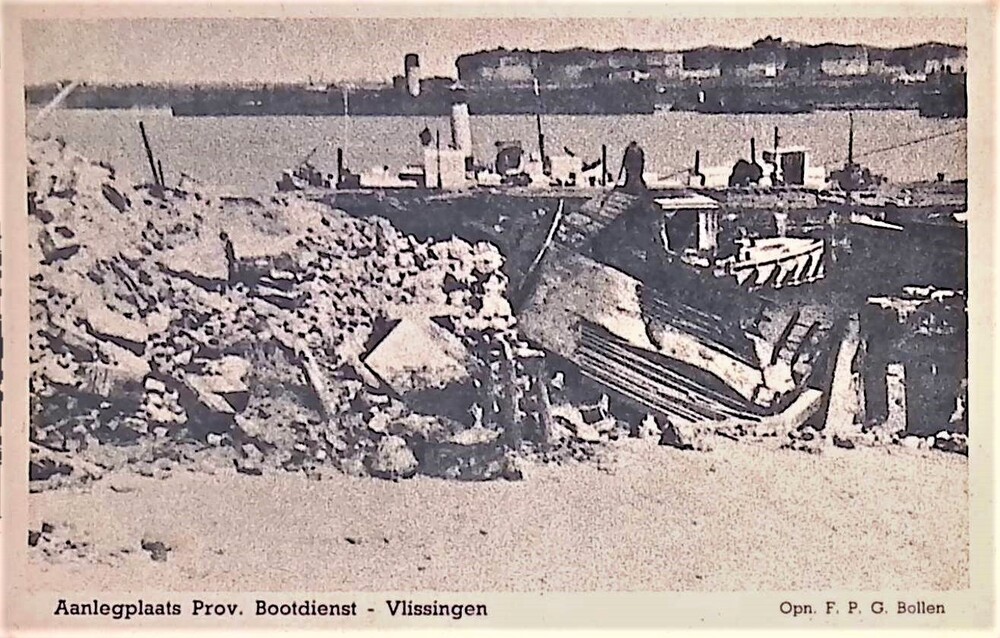 Het station Vlissingen."F.P.G. Bollen.""Een uitgave van Drukkerij Altendorffer Middelburg.""De kaarten waren in bezit van Mia Moulen uit Voerendaal. Zij woonde ten tijde van de oorlog in Nijmegen.en werkte als verpleegster. Zij maakte de bevrijding van Nederland grotendeels mee in Limburg. Zij was wel getuige van het bombardement van Nijmegen. Zij ging werken voor het Rode Kruis en hielp met de opvang ...